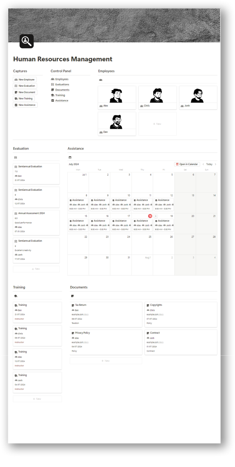 Are you looking for an effective and organized way to manage all aspects of human resources in your company? Our Notion template for HR Management is the perfect tool to keep everything in order and optimize your team's productivity.