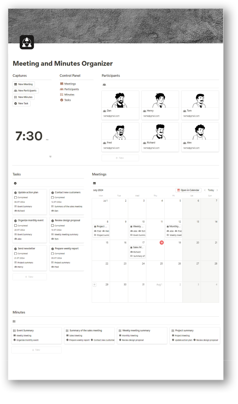 Looking for an efficient and organized way to manage your meetings and keep a detailed record of minutes? Our Notion Meeting & Minutes Organizer template is the perfect tool to improve productivity and ensure that all your meetings are effective and well documented.